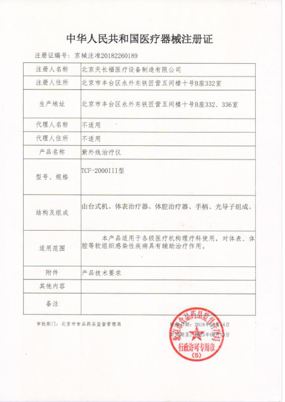 - TCF-2000III醫(yī)療器械注冊證
