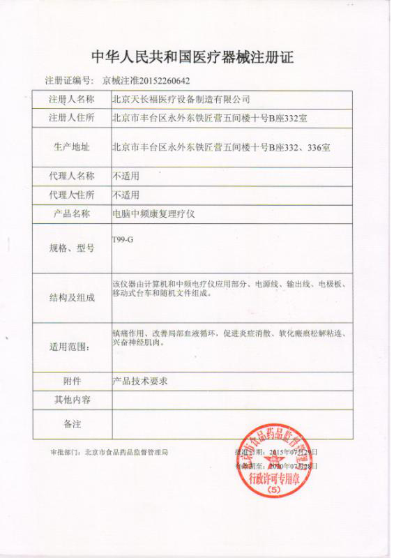 - T99-G醫(yī)療器械注冊證
